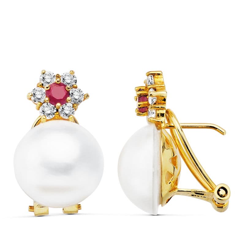 18K PENDIENTES ORO AMARILLO PERLA JAPONESA 21X13 MM