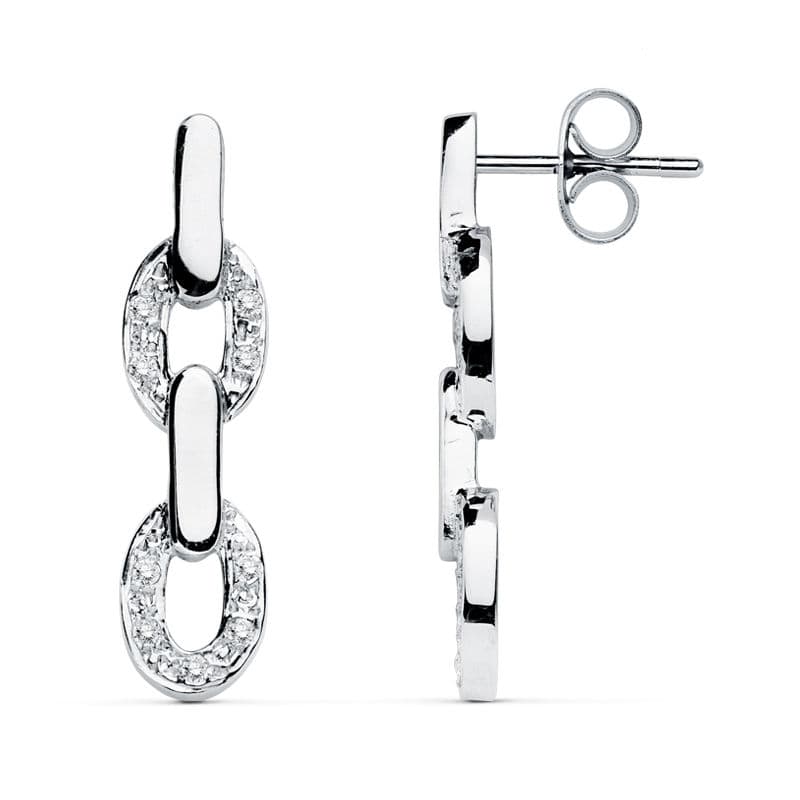 18K PENDIENTES ORO BLANCO CIRCONITAS 26X6 MM