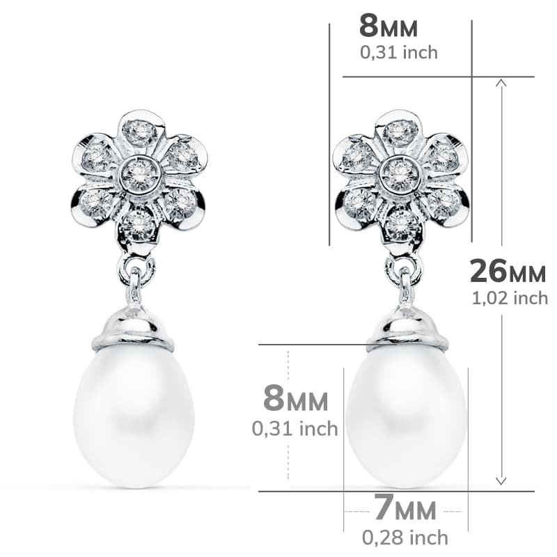18K PENDIENTES ORO BLANCO PERLA 23X8 MM