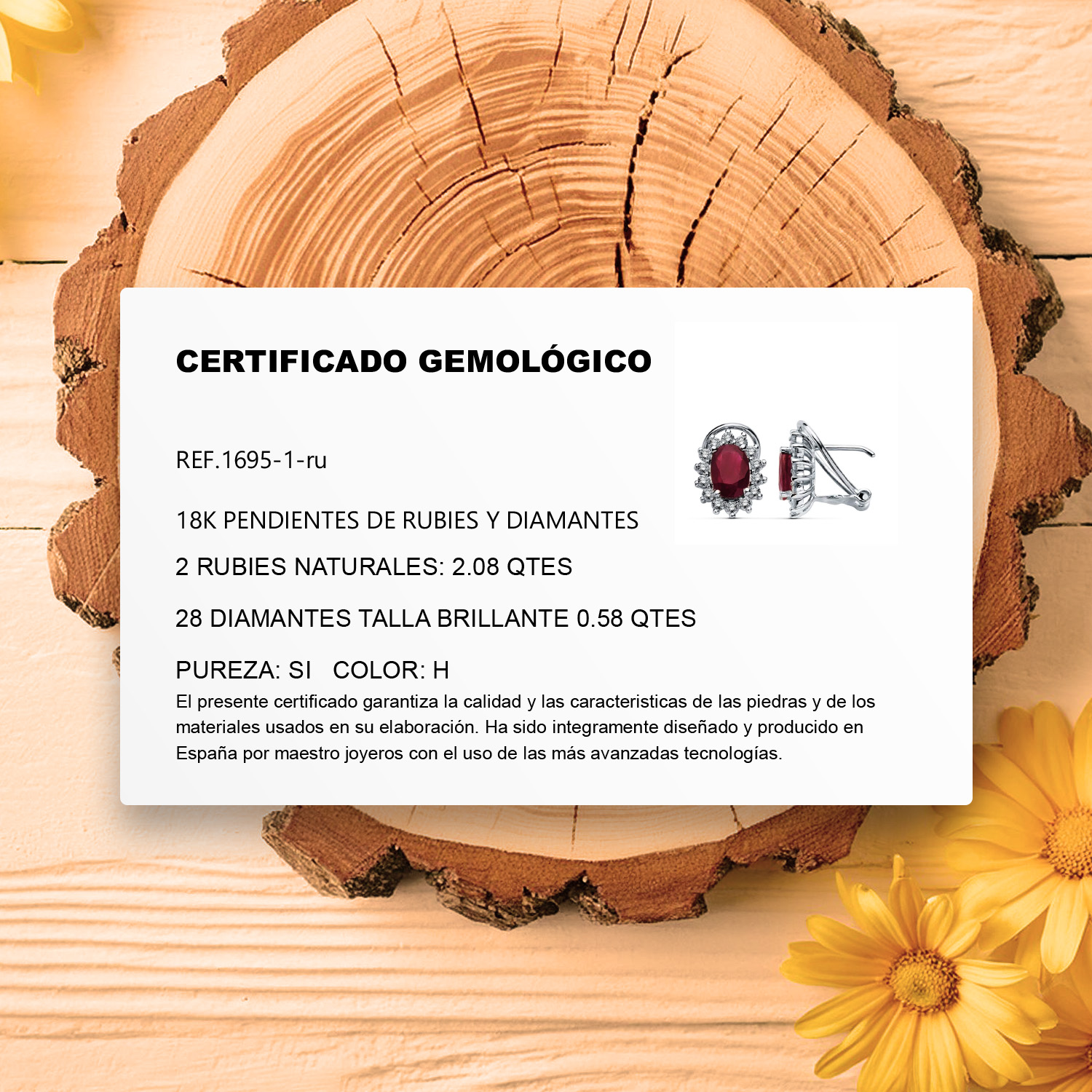 18K PENDIENTES ORO BLANCO RUBI 2.08 QTS. DIAMANTES S-HI. 0.580 QTS.