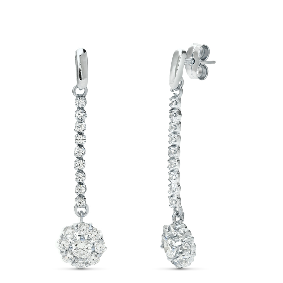 18K PENDIENTES ORO BLANCO JUEGO NOVIA PIÑA CIRCONITAS 38X7 MM PRESION