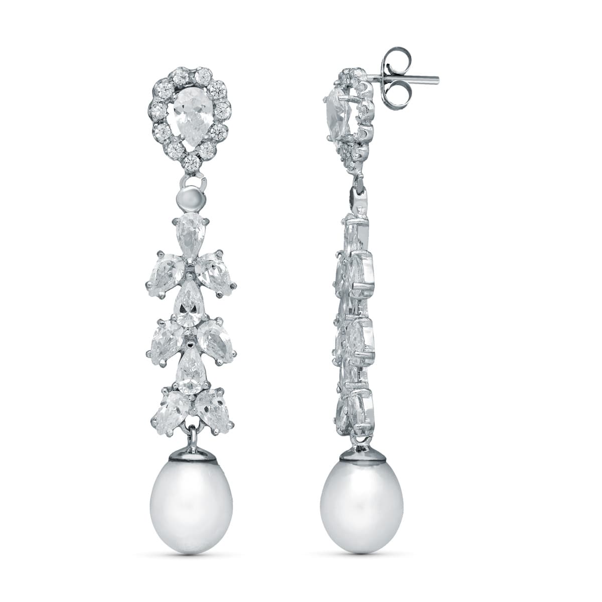 18K PENDIENTES NOVIA DOS CUERPOS PERLA CULTIVADA ORO BLANCO 47X8 MM PRESION