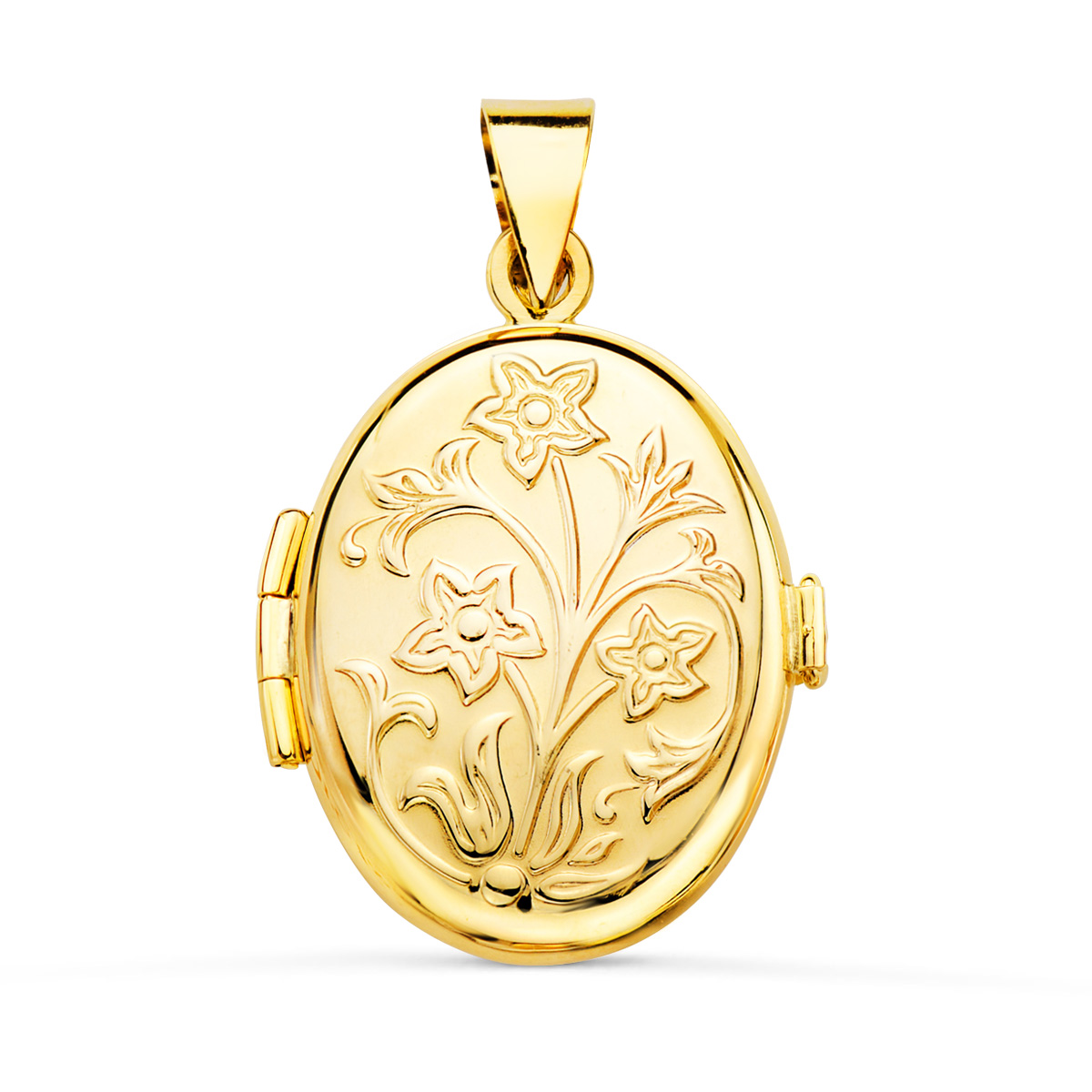 18K GUARDAPELO DIJE PORTAFOTOS OVAL LABRADO 22X19 MM
