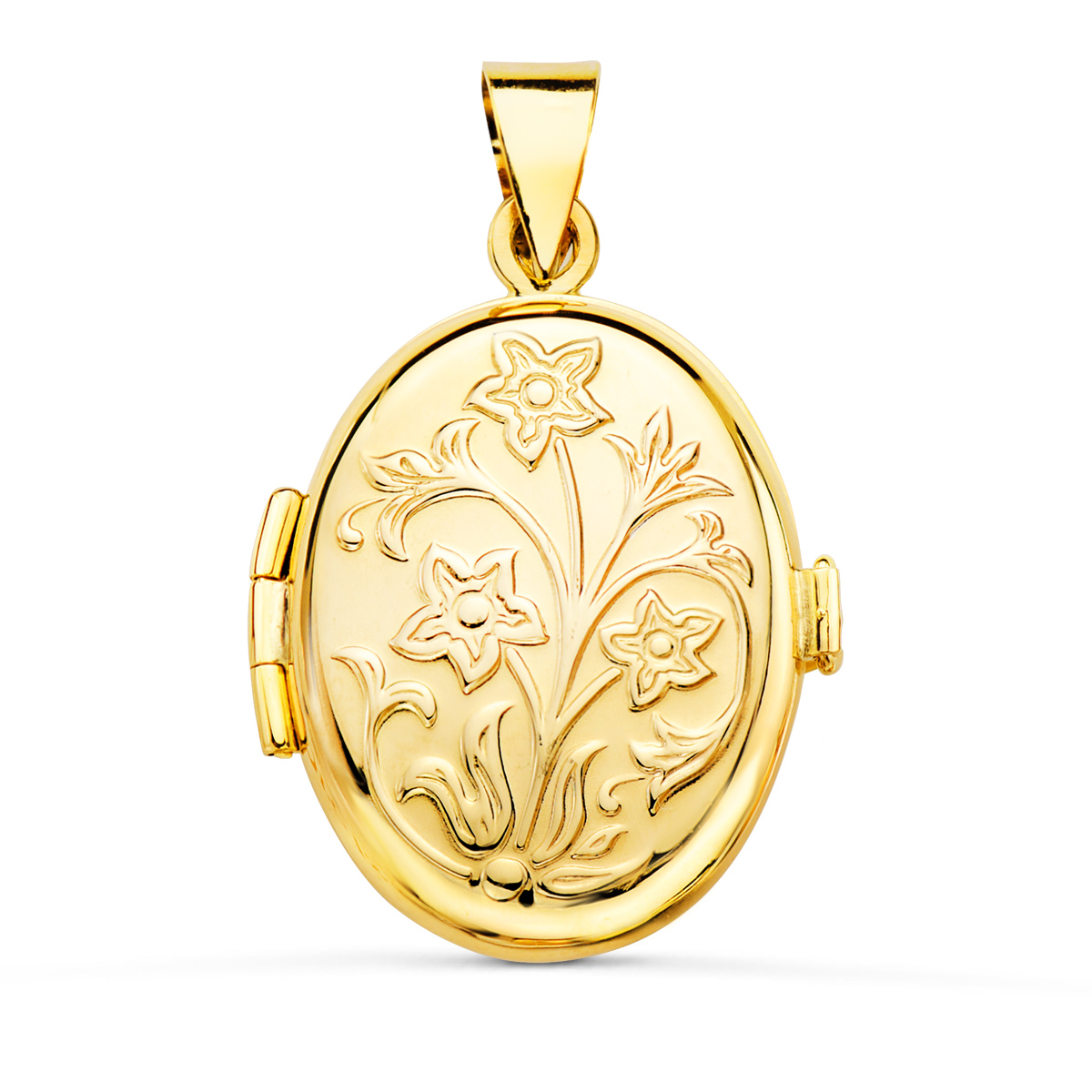 18K GUARDAPELO DIJE PORTAFOTOS OVAL LABRADO. 26X21 MM
