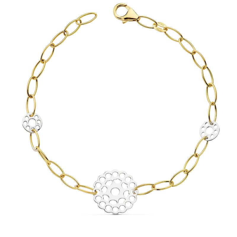 18K PULSERA BICOLOR MOTIVOS 19CM 4.00 GR