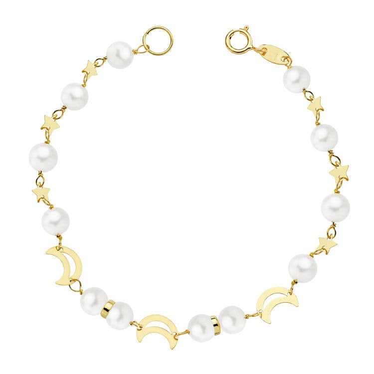 18K PULSERA COMUNION PERLA 5 MM 17 CM
