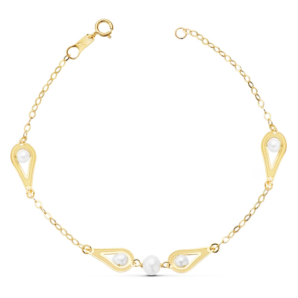 18K PULSERA COMUNION PERLA Y MOTIVOS. 18 CM
