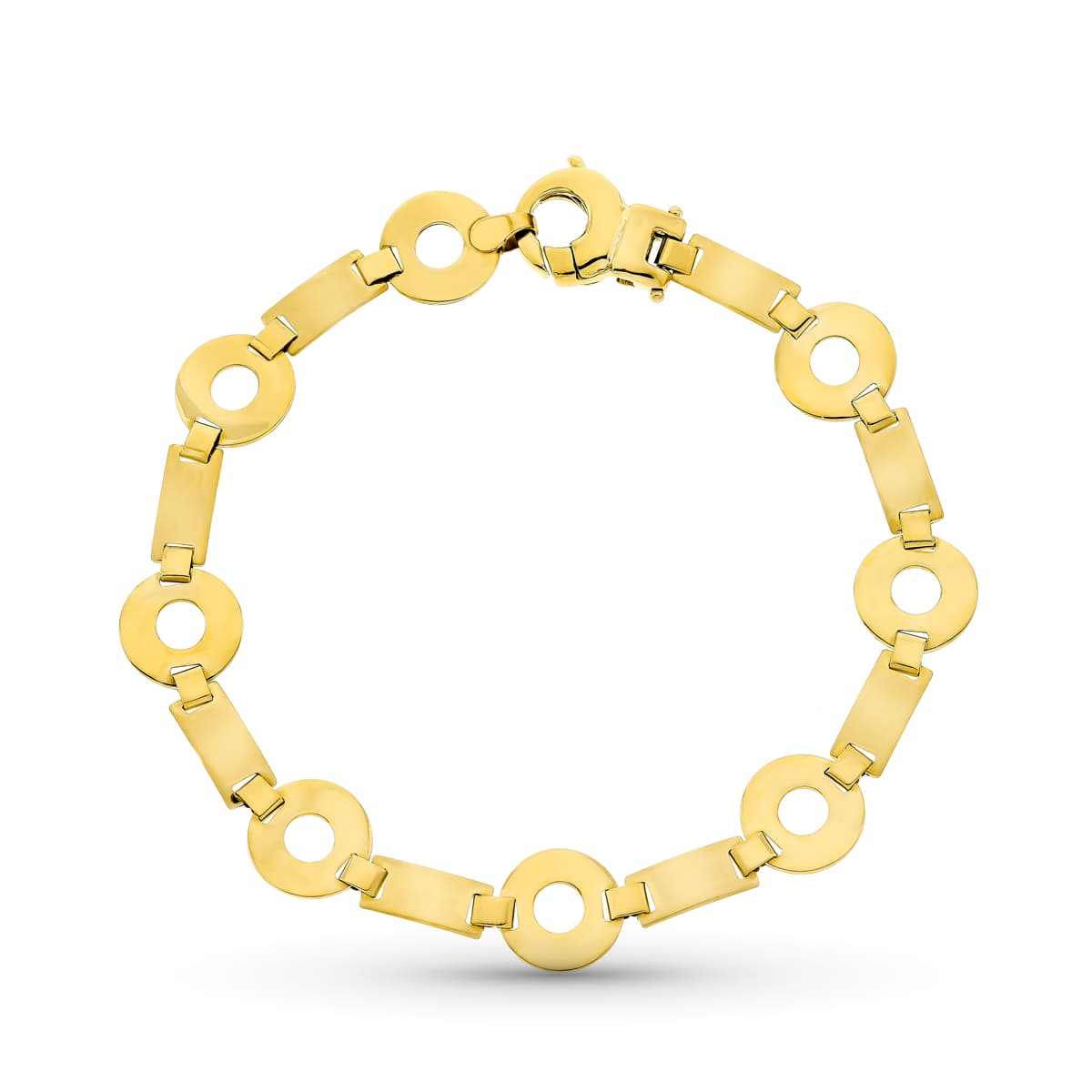 18K PULSERA ORO AMARILLO CIRCULOS MATE Y BRILLO 19CM