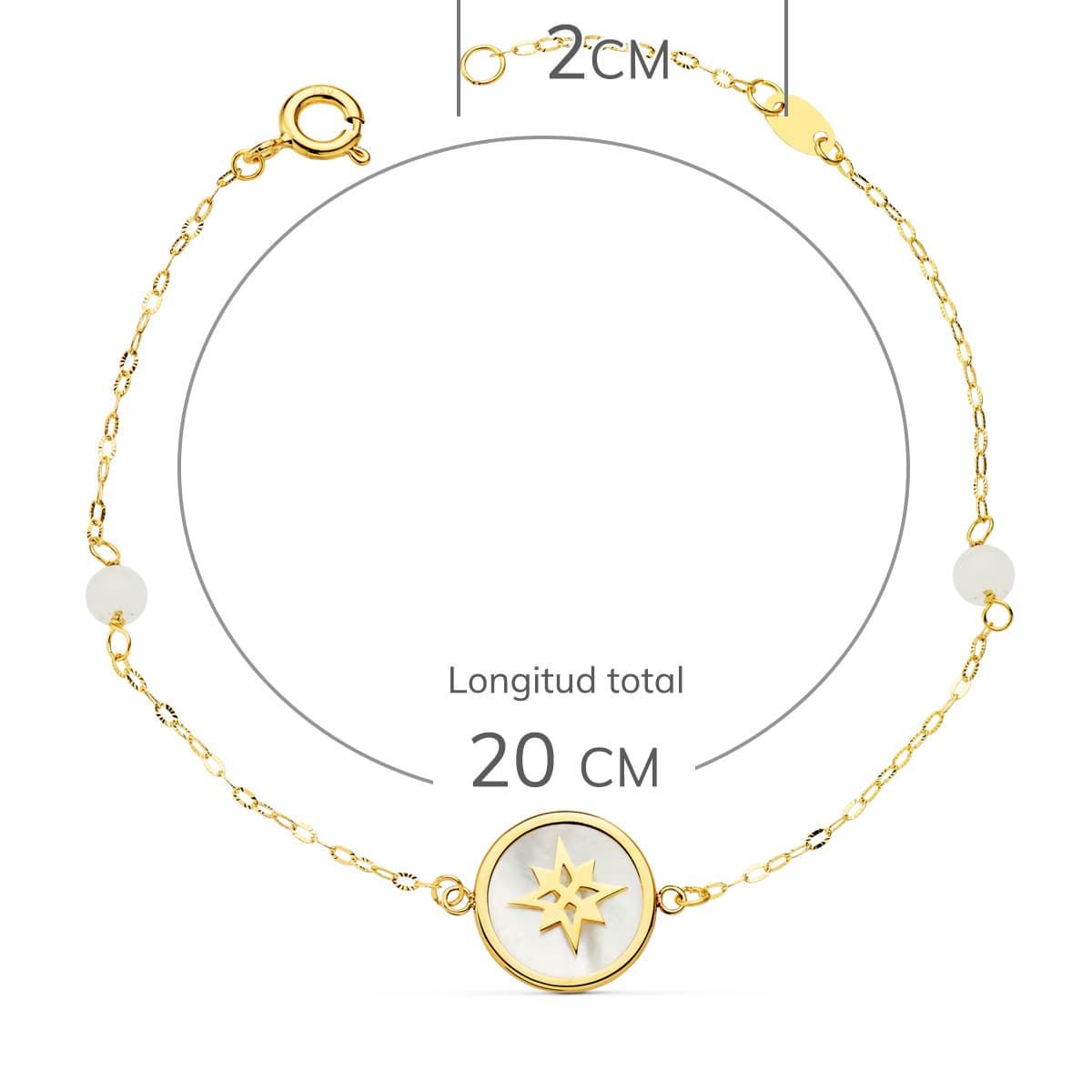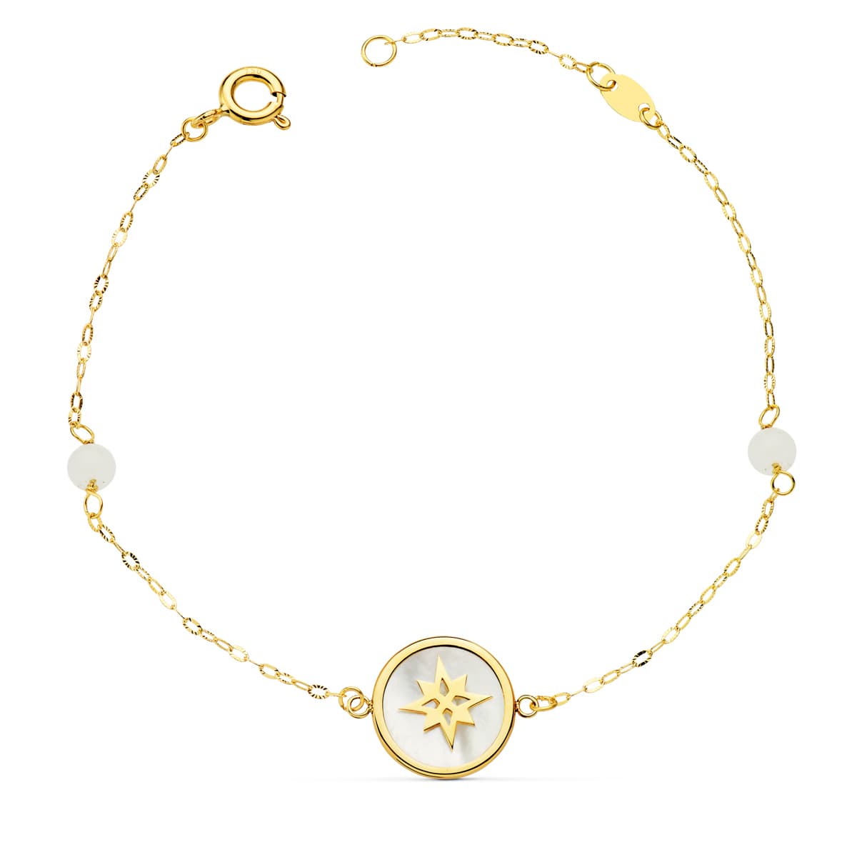 PULSERA NACAR Y ROSA DE LOS VIENTOS 12 MM Y BOLAS JADE 4 MM CADENA 18 + 2.5 CM