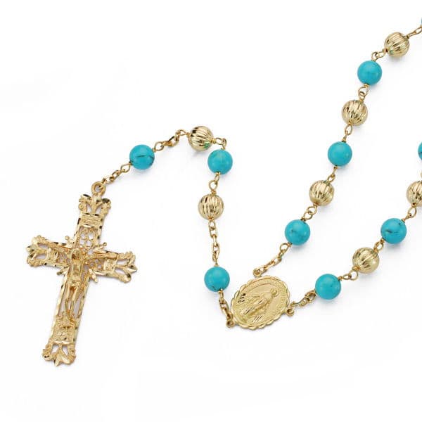 ROSARIO BOLAS Y TURQUESAS. 60 CM.