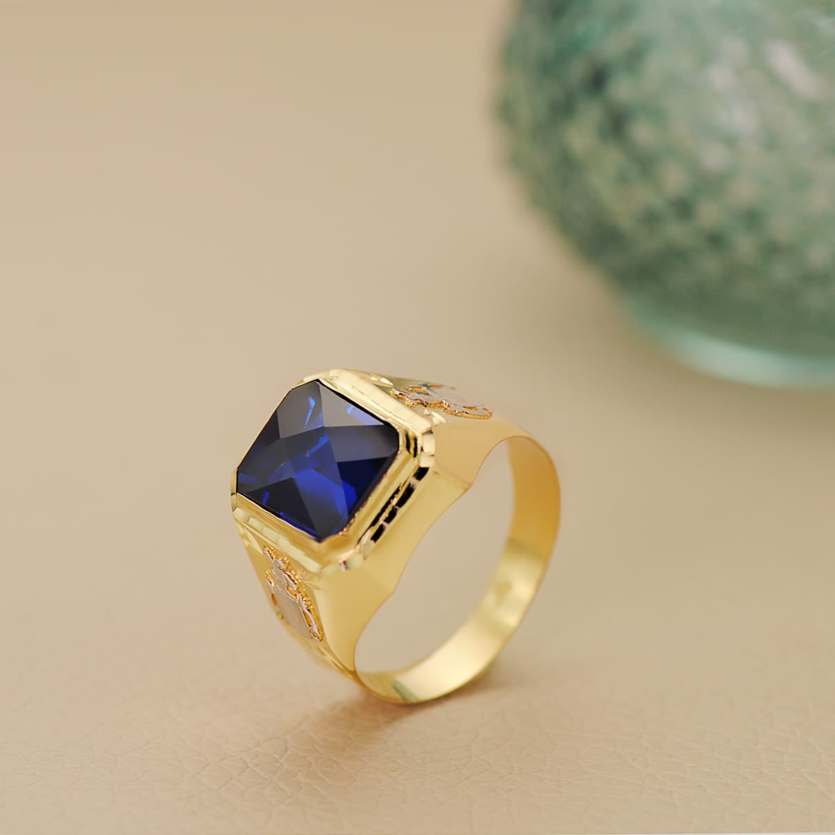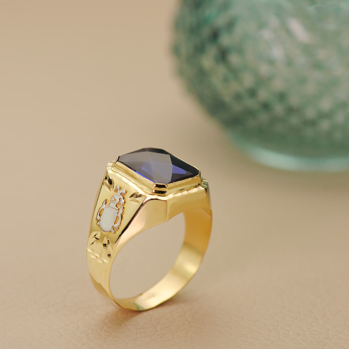 18K SELLO ORO AMARILLO CABALLERO ZAFIRO SPINEL