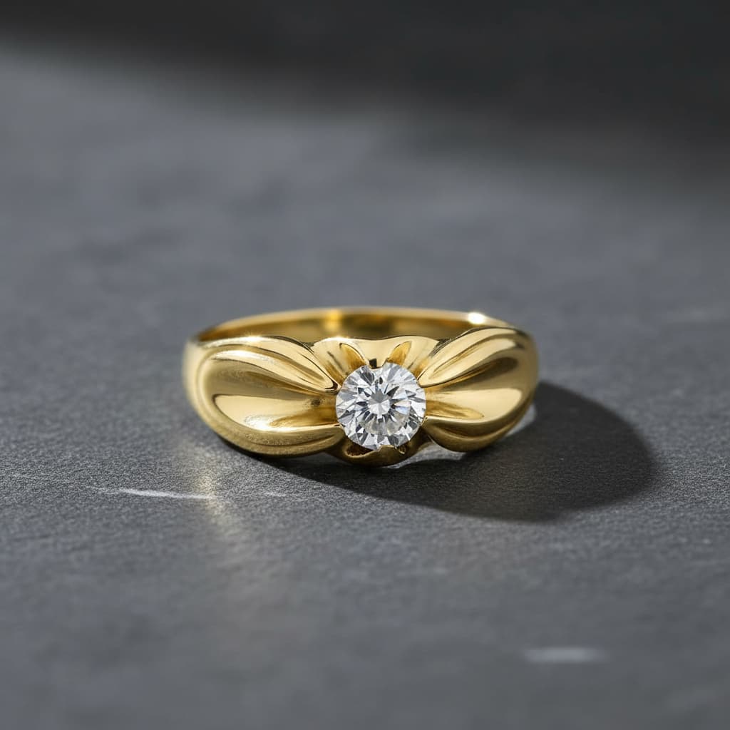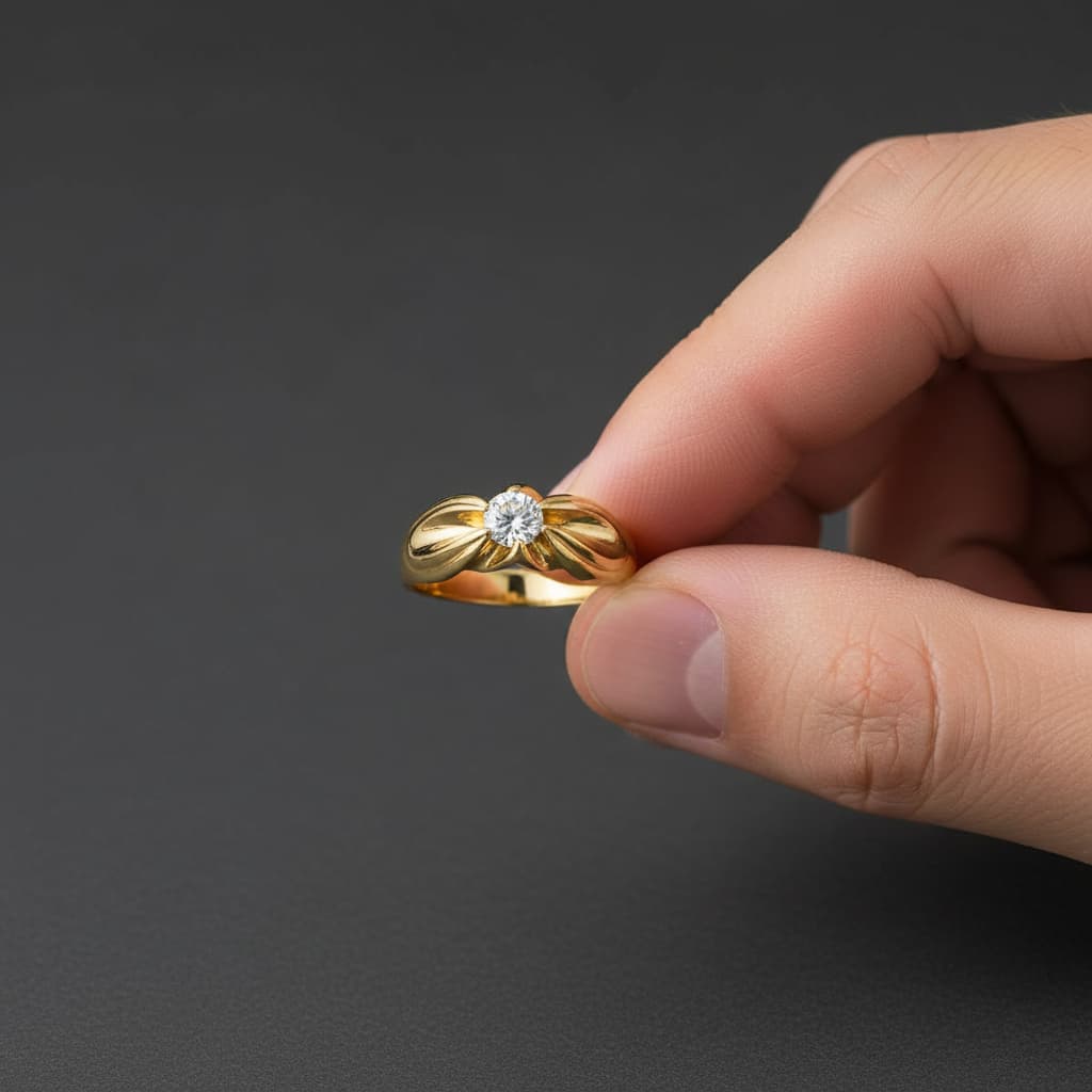 Solitario en oro amarillo 18K macizo con circonita de 5 mm. Peso de 8.95 g, diseño clásico y elegante, ideal para destacar con estilo y distinción.