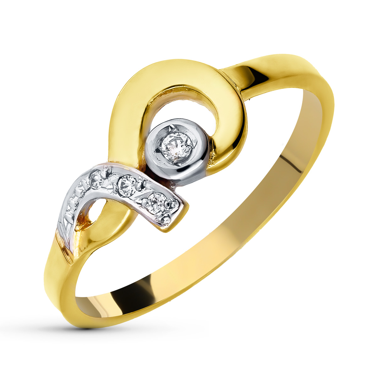 18K SORTIJA ORO BICOLOR CON MOTIVO Y CIRCONITAS. ANCHO: 8 MM