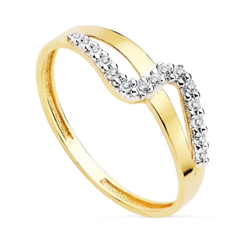 18K SORTIJA ORO BICOLOR CIRCONITAS. ANCHO: 6,5 MM