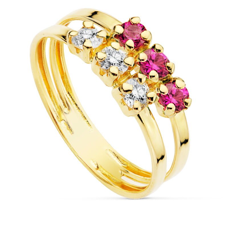 18K SORTIJA CIRCONITAS ROJAS Y BLANCAS