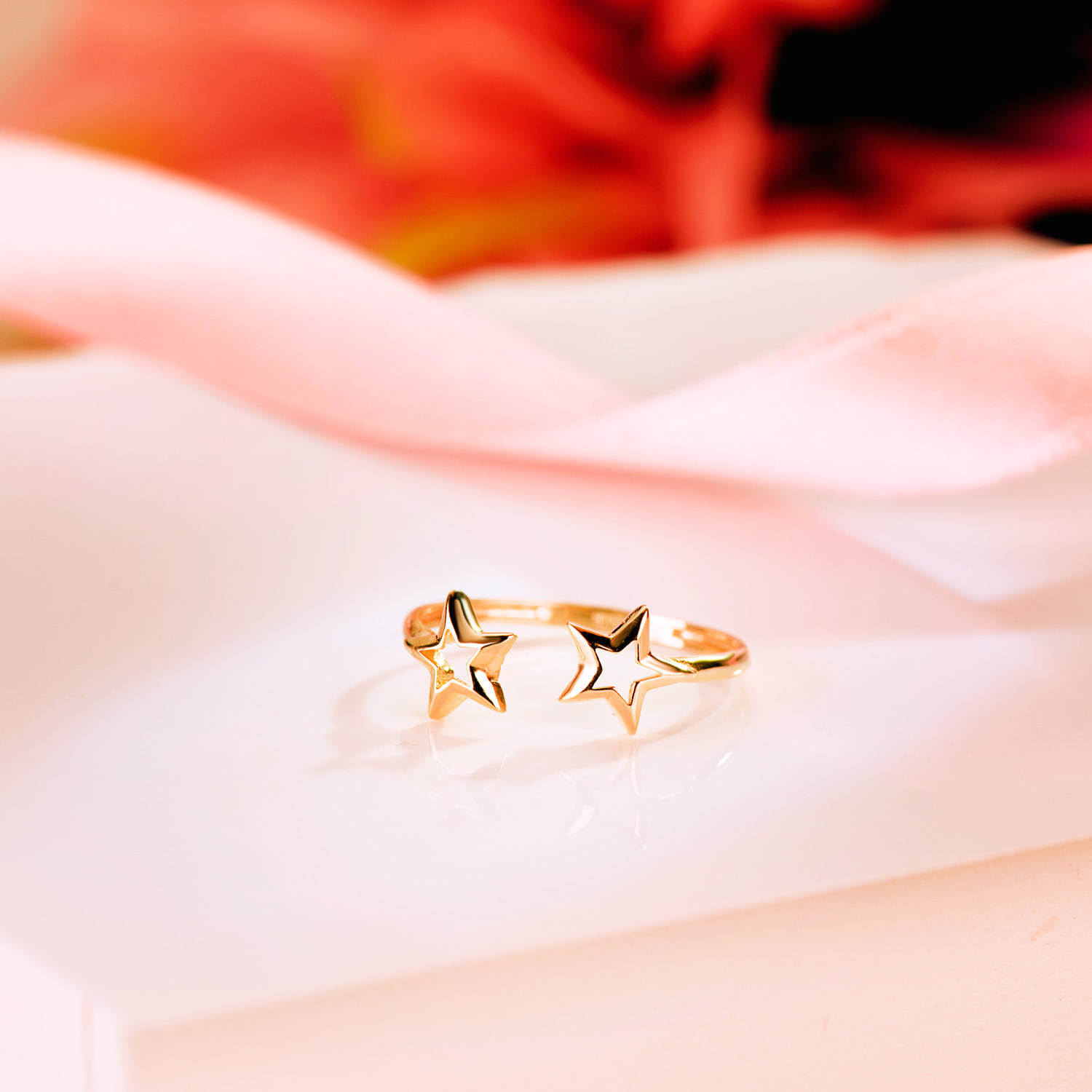 18K SORTIJA ORO AMARILLO CON DOS ESTRELLAS DE 6 MM ABIERTA Y AJUSTABLE
