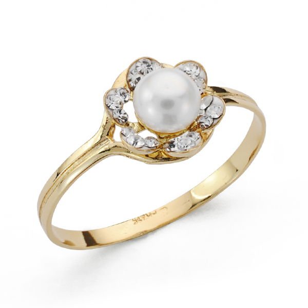 18K SORTIJA FLOR Y CIRCONITAS 8X8 MM