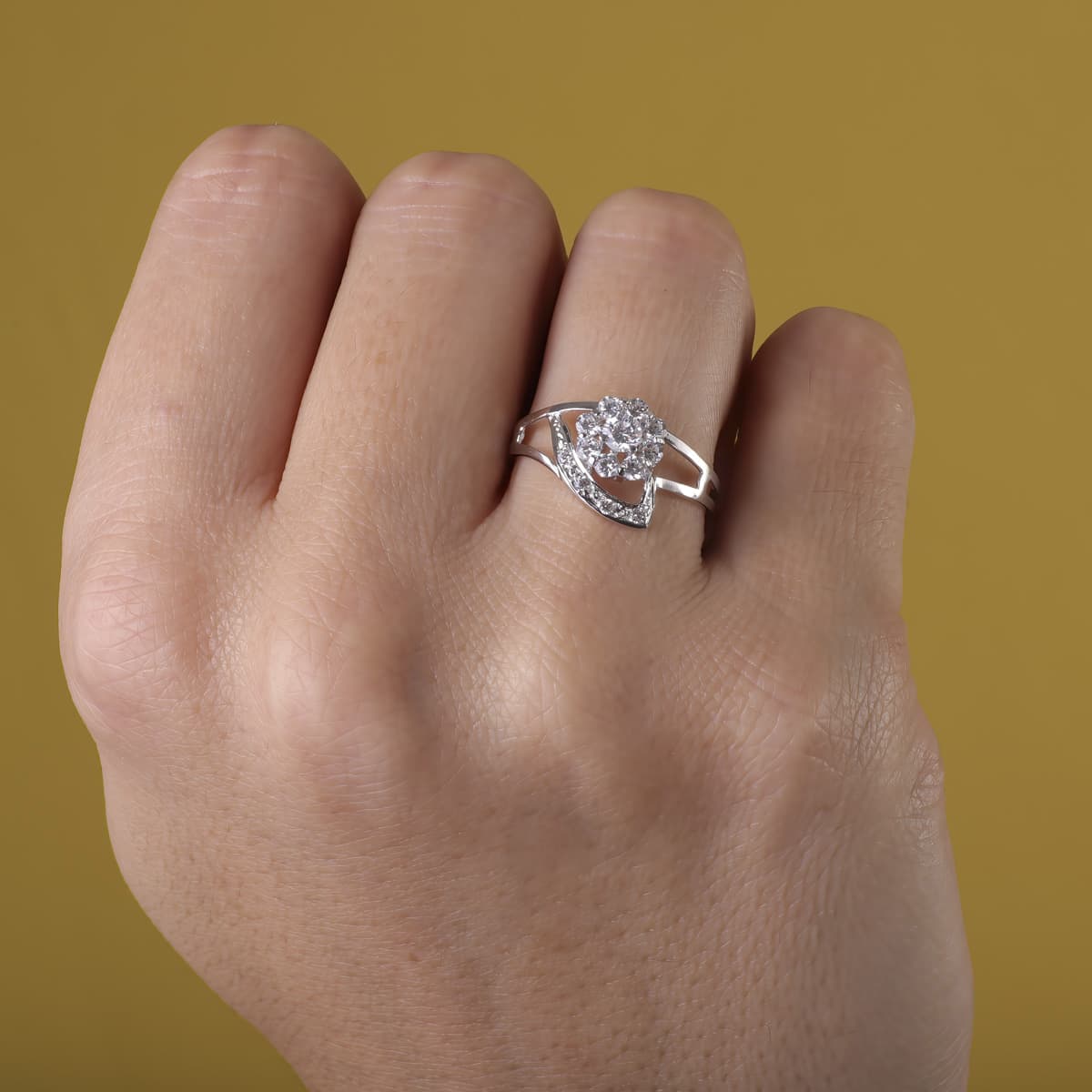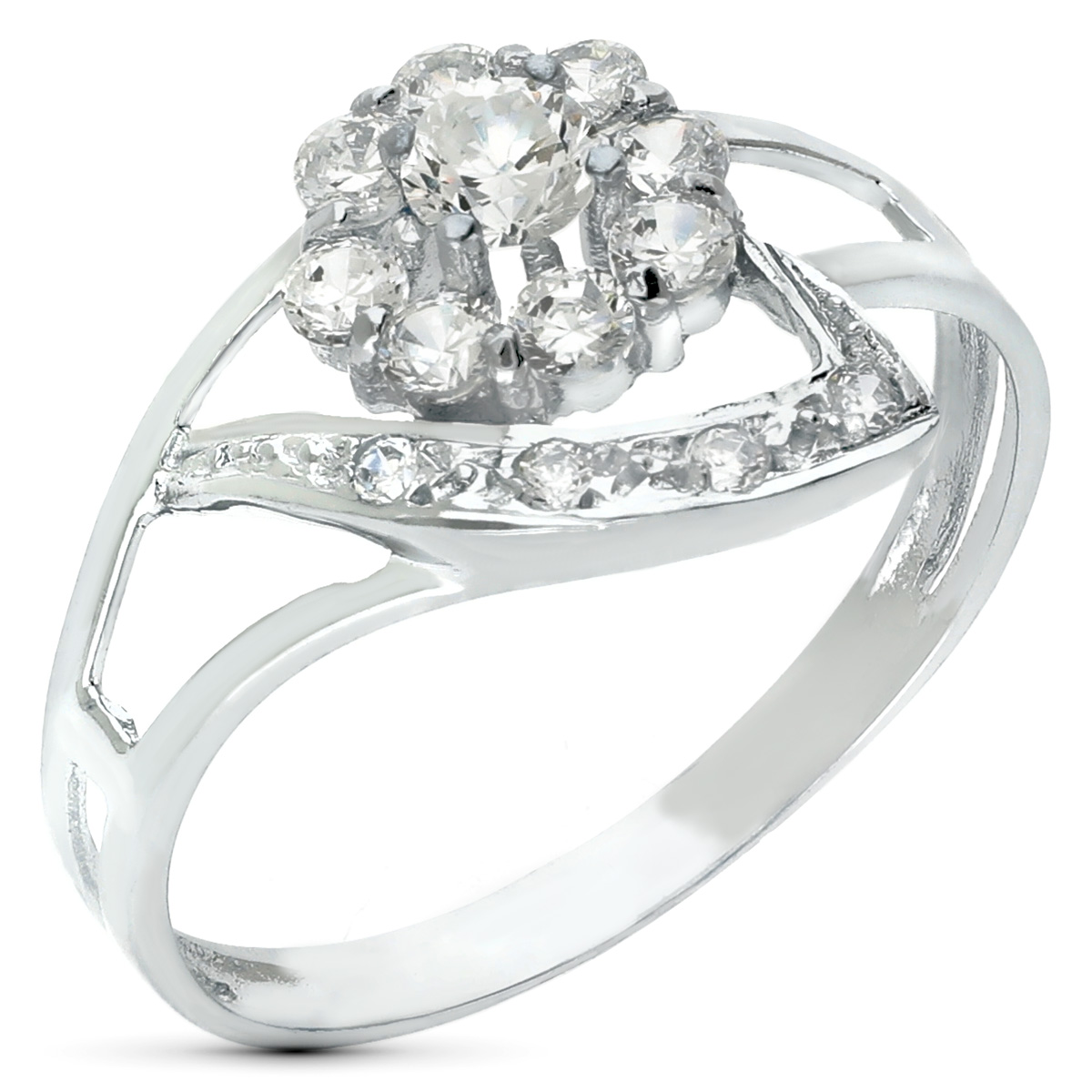 18K SORTIJA ORO BLANCO JUEGO NOVIA FLOR CUAJO 10 MM
