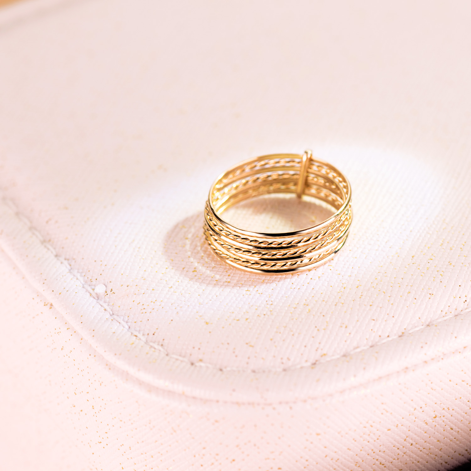 18K SORTIJA ORO AMARILLO SEMANARIO 7 HILOS LISOS Y TRENZADOS